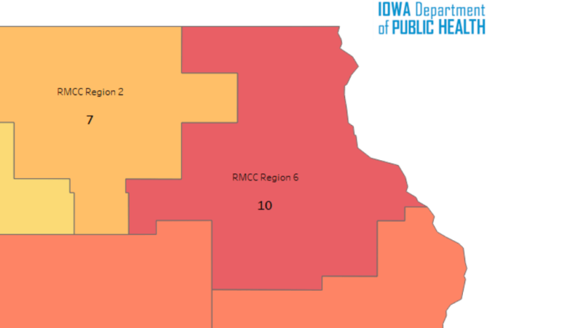 Today, Region Six, which encompasses Northeast Iowa, was rated a 10 on the state government’s metric to judge the severity of outbreaks in Iowa. Reynolds didn’t say she was issuing a shelter-in-place order, which is the term the IDPH uses for guidance on rankings 10 and higher.