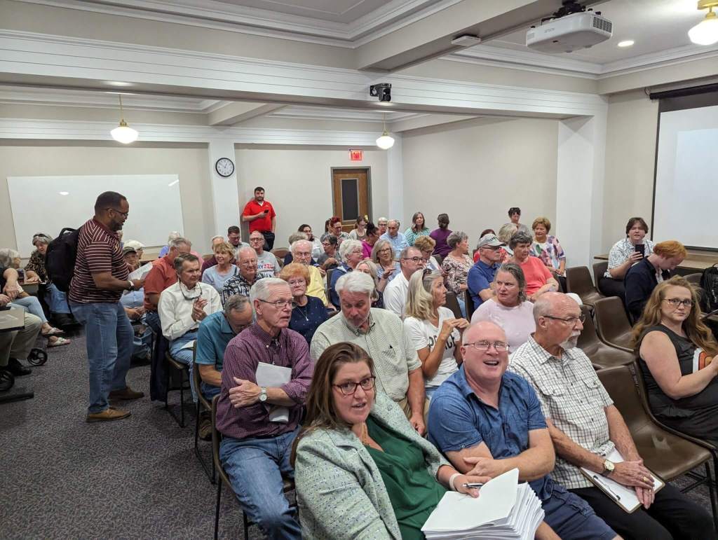 This led to a June 30 meeting of the Warren County Election Commission, which includes county attorney Douglas Eichholz, county treasurer Julie Daughtery, and Whipple, who decided not to recuse himself from the situation despite the obvious conflict of interest. The meeting drew a standing-room-only crowd and Warren County officials had overflow space as well.
