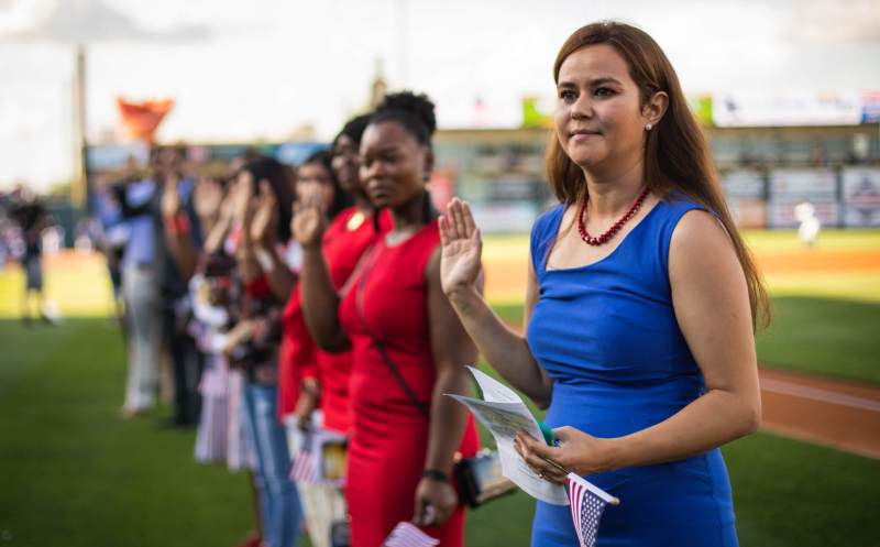 To date, 327 people have taken the oath of citizenship at the Des Moines ballpark.