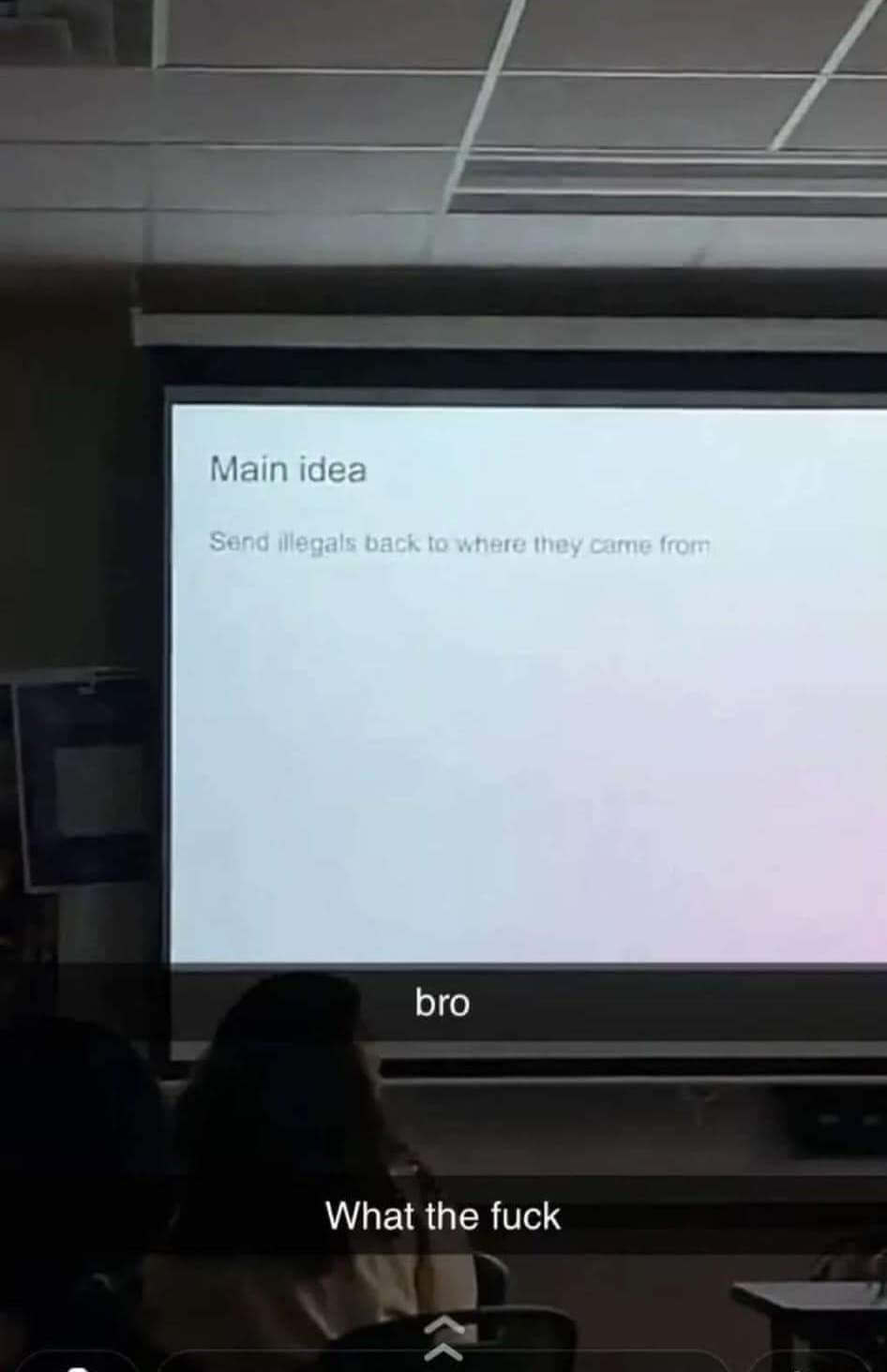 Some examples include a slide titled: “Why Illegals Should go home,” with one point claiming, “There is a huge influx of mexican rapists.” The presentation ended with, “In the end, Mexicans are bad.”