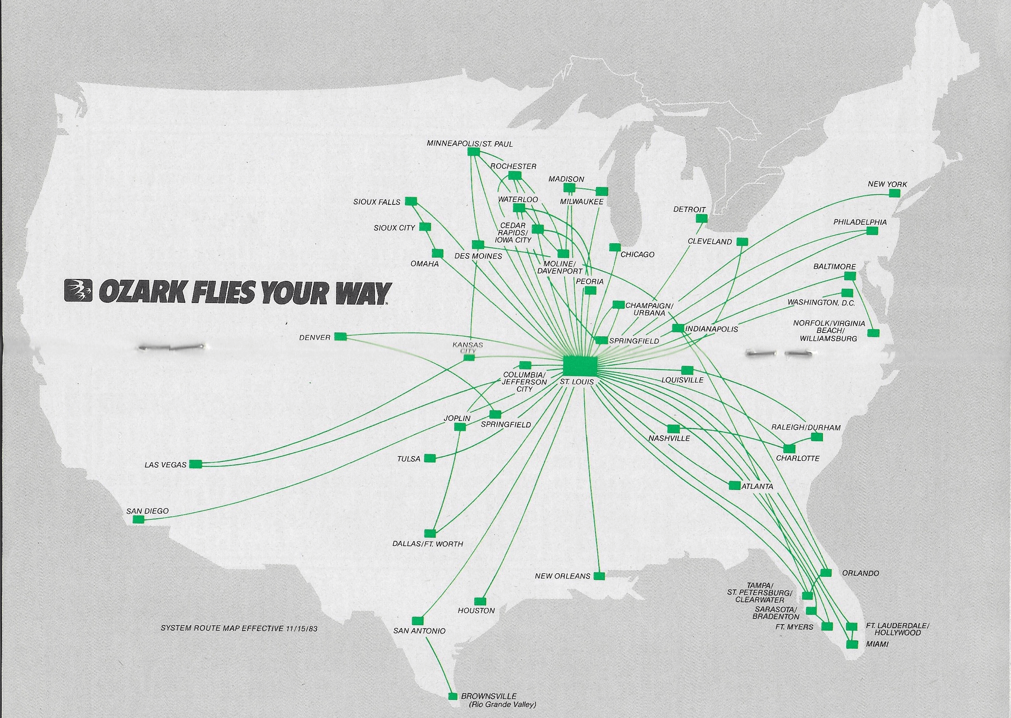 At the time, local airline service was more like local train service, with often one or two (and sometimes even more) intermittent stops between your origin and destination. It wasn’t as efficient as flying to a hub city and connecting to a new flight to your final destination, and it was also much more expensive.