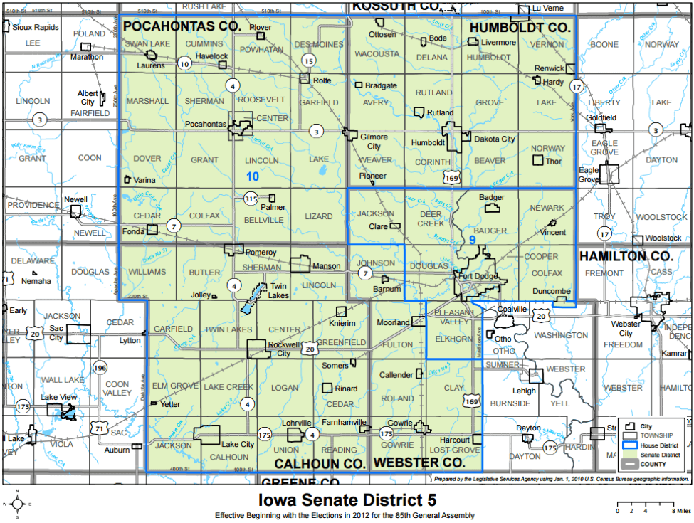 | Senate District 5 | R +12% | R +11% | R +6% | R +16% | R +11% | R +11% | Pocahontas / Humboldt / Calhoun / Webster Counties |