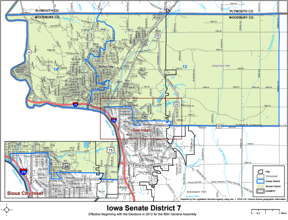 | Senate District 7 | R +20% | D +9% | D +5% | D +5% | R +0% | D +6% | Sioux City |