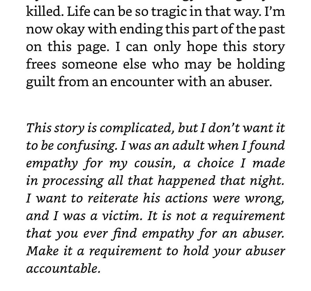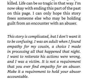 The whole chapter is more about Johnson’s conflicted emotions during and after the assault, and the author clearly calls it abuse and shares their struggle to process it, and their hesitation to write about it at all.