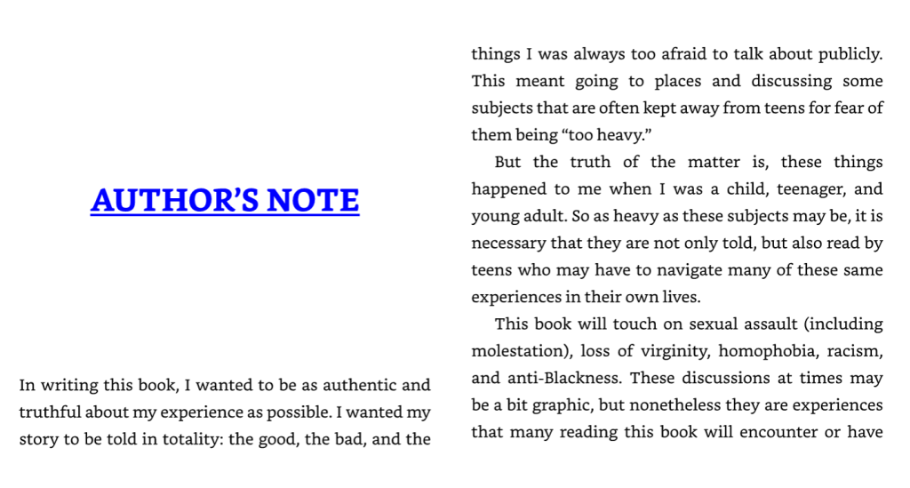 There is also an author’s note in that book that specifically lays out why the author believes having these discussions are so necessary. All of which are a far cry from what conservative critics have alleged, that these books are promoting the more explicit actions described.