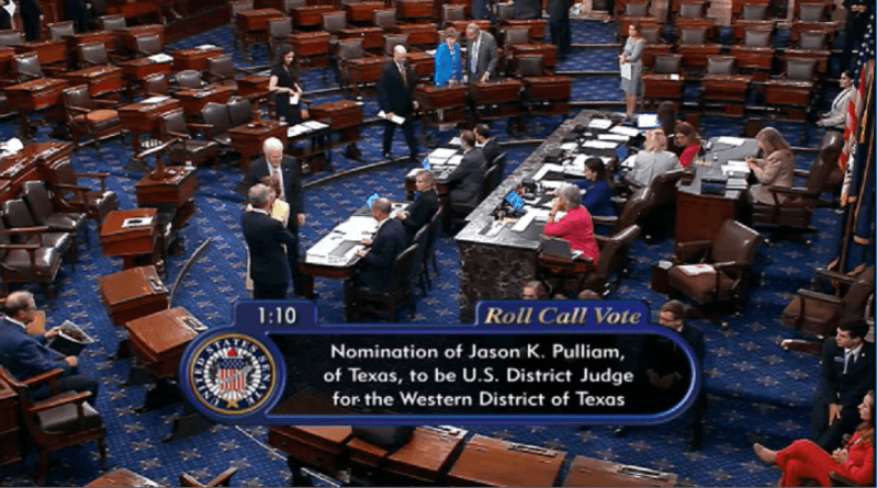 Background: Pulliam was recommended to the president by Republican Texas Sens. Ted Cruz and John Cornyn. He began his legal career as a U.S. Marine Corps Judge Advocate and practiced law at two different firms before being elected to the County Court in 2010. Other positions include: Texas Fourth Court of Appeals, January 8, 2015 to December 31, 2016. Bexar County, County Court at Law Judge, January 3, 2011 to January 7, 2015.